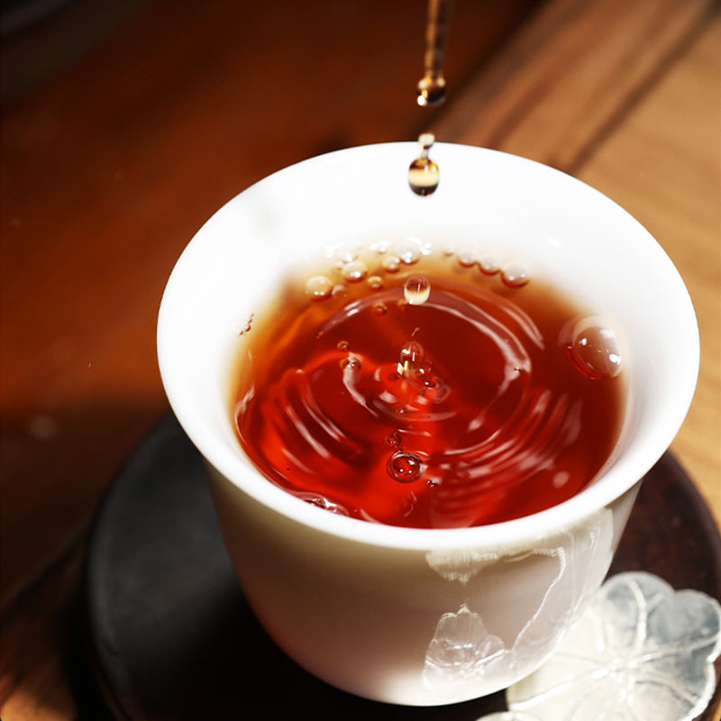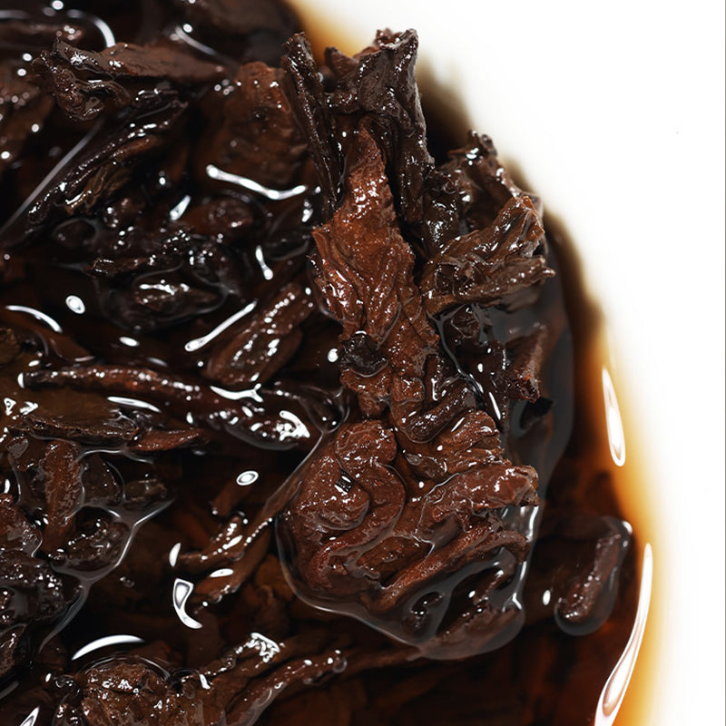 Concentrated, mellow, thick and smooth, without pile smell, sweet, glutinous and delicate, with good taste coordination. When first smelling the dry tea cake, a strong aroma comes to the nose without any miscellaneous smell. After brewing, when smelling the bottom of the leaves while hot, a faint orchid fragrance suddenly appears, and a trace of attractive maltose fragrance emerges from the orchid fragrance. When the tea enters the mouth, the tea aroma sinks into the soup, heavy and restrained, warm and charming. After drinking, smelling the bottom of the cup, there are bursts of strong aroma, leaving a lingering aftertaste. As soon as the tea soup enters the mouth, the sense of viscosity is evident. The rich pectin released by the plump buds and leaves makes the tea soup extremely sweet, glutinous and delicate, with good taste coordination and balance in the mouth. It is thick without pile smell, with comfortable sweet aftertaste, warm and smooth in the throat, without any dryness or heat.