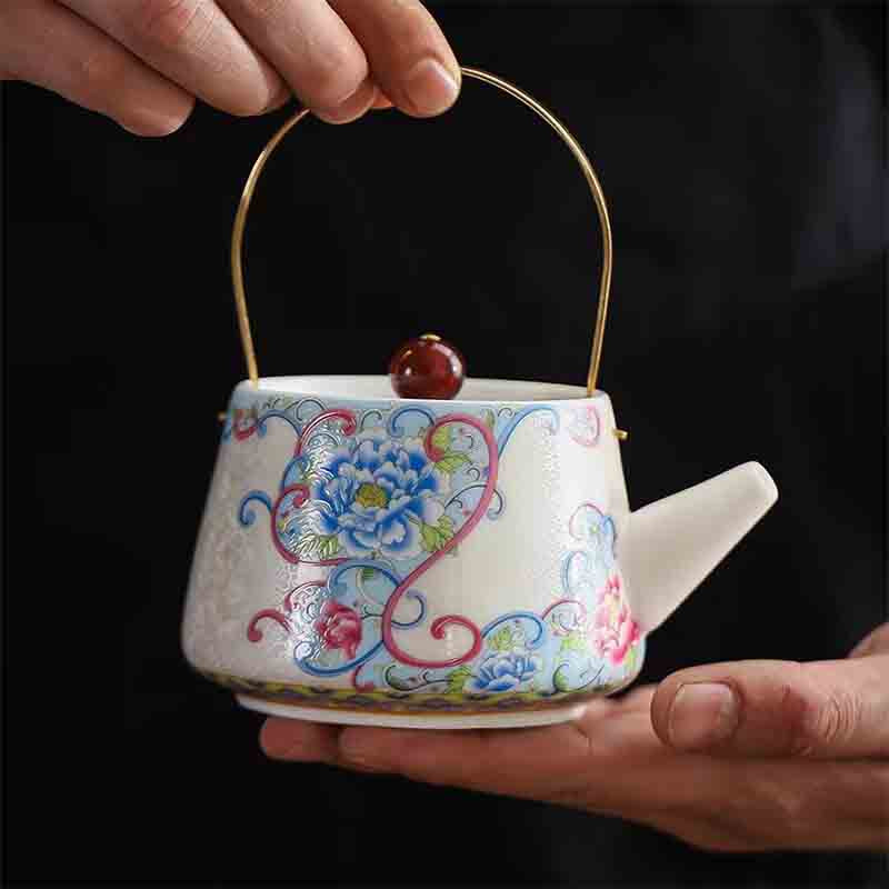 - The filigree enamel is rich in color, and the various colors complement each other to create a full picture. The soft flat silver is folded and rolled into a peony pattern with a sense of layering and delicacy. It is subtle and elegant at first glance, classical and gorgeous.Handmade filigree silver tea set [Blooming flowers, grace and splendor, delicate porcelain The filigree enamel is rich in color, and the various colors complement each other to create a full picture. The soft flat silver is folded and rolled into a peony pattern with a sense of layering and delicacy. It is subtle and elegant at first glance, classical and gorgeous.