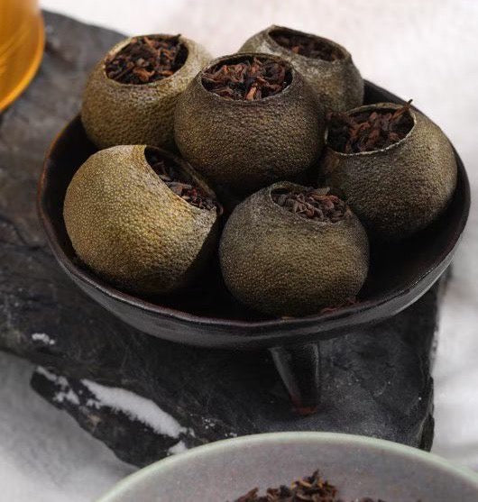 3. Artful Filling: Each hollowed citrus is hand-stuffed with premium Pu-erh, ensuring a balanced ratio of peel to tea.