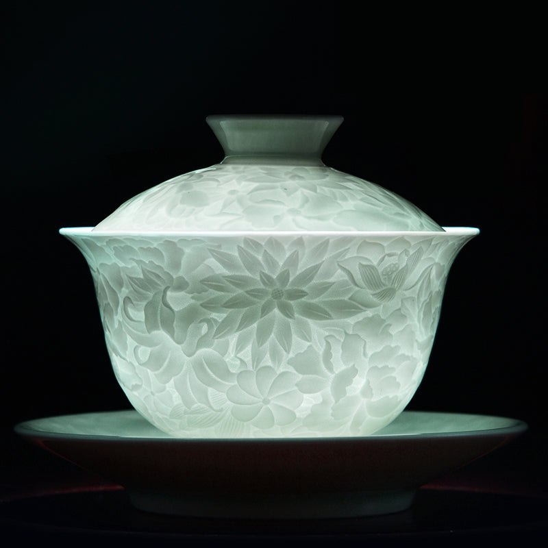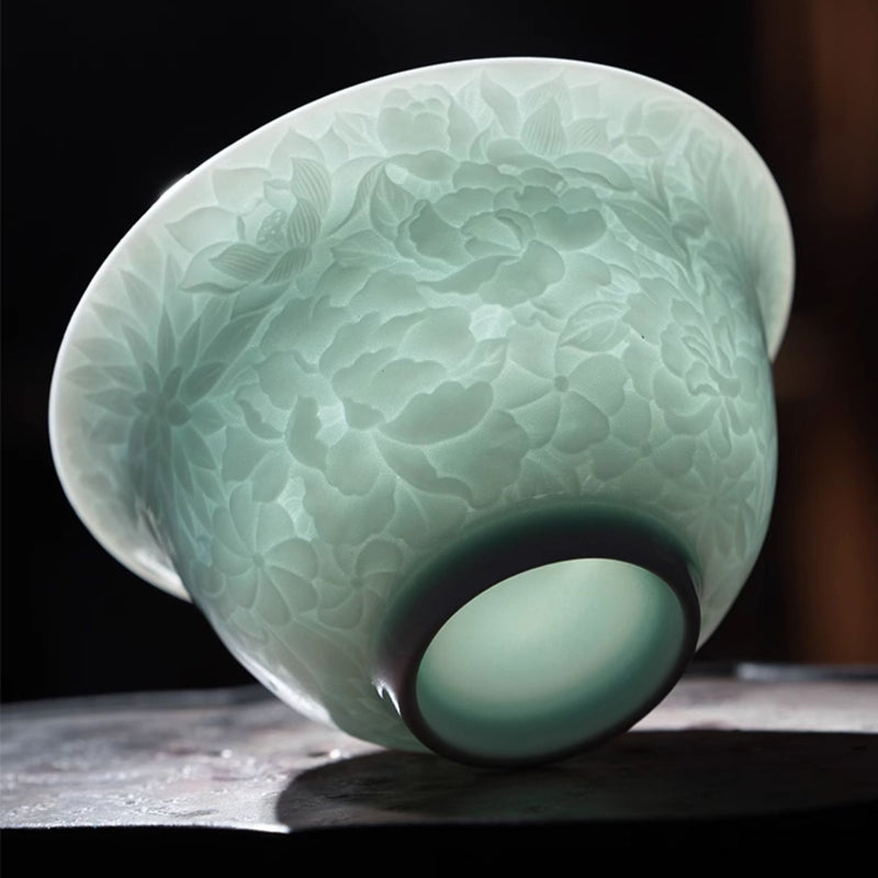Shadow celadon porcelain, also known as Ying Qing porcelain, is the Han traditional porcelain craft treasures, its predecessor is the blue and white porcelain, known as “color white and blue” shadow celadon porcelain is the mid-North Song Dynasty Jingdezhen created, its glaze green and white and light, glaze clear Li Jie, the tire texture of the firm and greasy white, the color of the warm and moist as jade, so the history of the “fake jade,” the name. Li Qingzhao in the southern song dynasty in “drunken flower yin” in the “jade pillow yarn kitchen” sentence, jade pillow refers to the blue and white porcelain pillow. Yuan dynasty blue and white porcelain products, some also printed with “jade out of Kunshan” and “jade out of Kungang” inscription. The Southern Song Dynasty mass production, and “known in the sea”, is the market of the sought-after goods. At that time, the vast majority of shadow celadon porcelain for the thin picking and transparent flying phoenix and other patterns. These patterns were carved by highly skilled ceramic artists on the blanks and then fired at a high temperature with a transparent green glaze.
